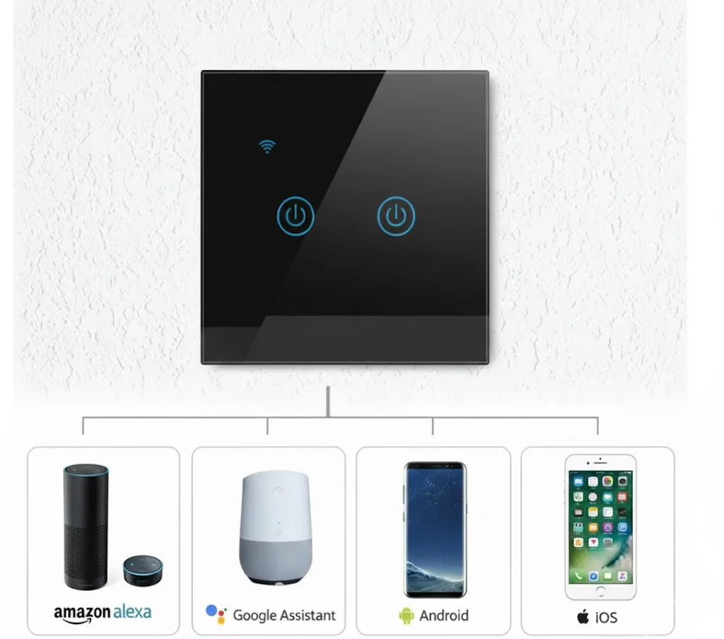 This 2-Gang Wi-Fi Touch Switch lets you control two separate lights or appliances from anywhere using your phone, set automatic schedules, or turn them on and off with your voice.